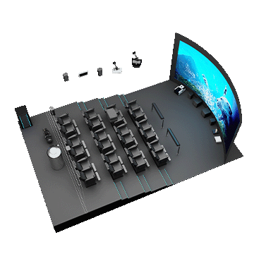 5D影院由三部分組成:立體投影系統(tǒng);振動座椅和特效設備;計算機控制系統(tǒng)。這三者的協(xié)同作用形成一個系統(tǒng),刺激觀眾的視覺、聽覺、觸覺和感官,再現(xiàn)電影主題所涉及的環(huán)境、環(huán)境中的各種細節(jié)、讓觀眾感受身臨其境的整體效果。